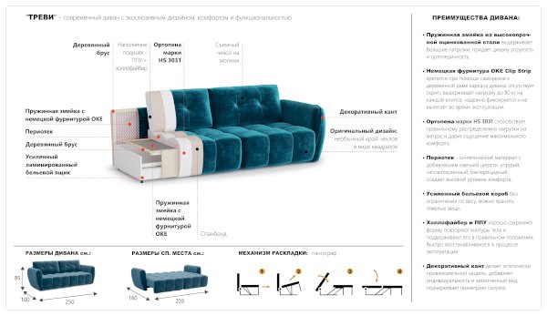 Диван Треви-2 (Империал) продается в интернет-магазине mebelin-voskresensk.ru по цене 92 146 руб. Есть доставка по Воскресенску и Московской области. Возможность подъема на этаж и сборки уточняйте у менеджера по телефону 8(800)505-27-11.